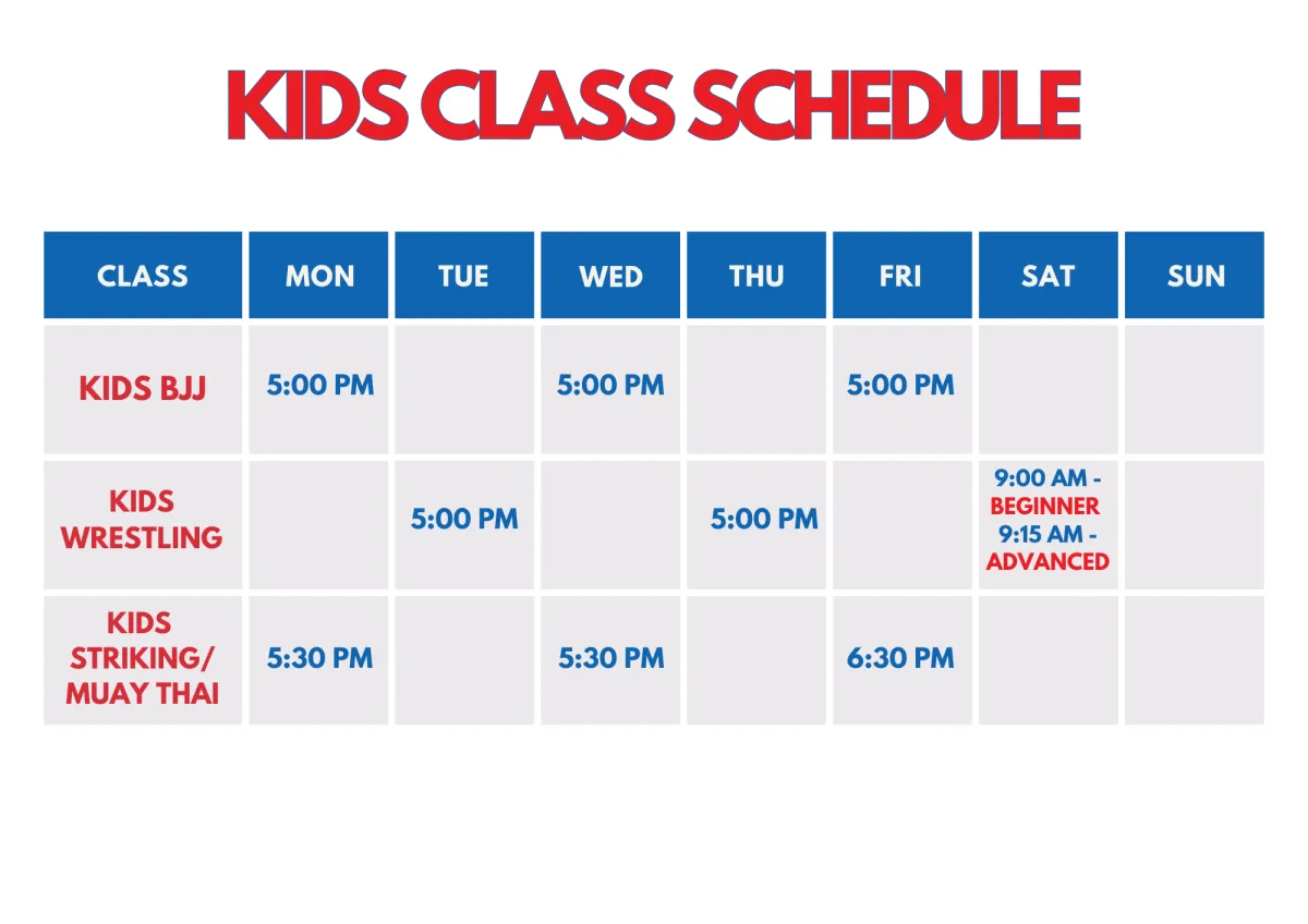 Your child will be introduced to Brazilian Jiu-Jitsu, Wrestling, and Striking, learning valuable skills in a fun, safe environment!